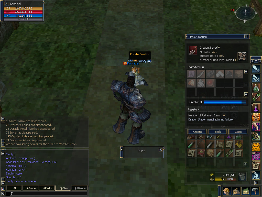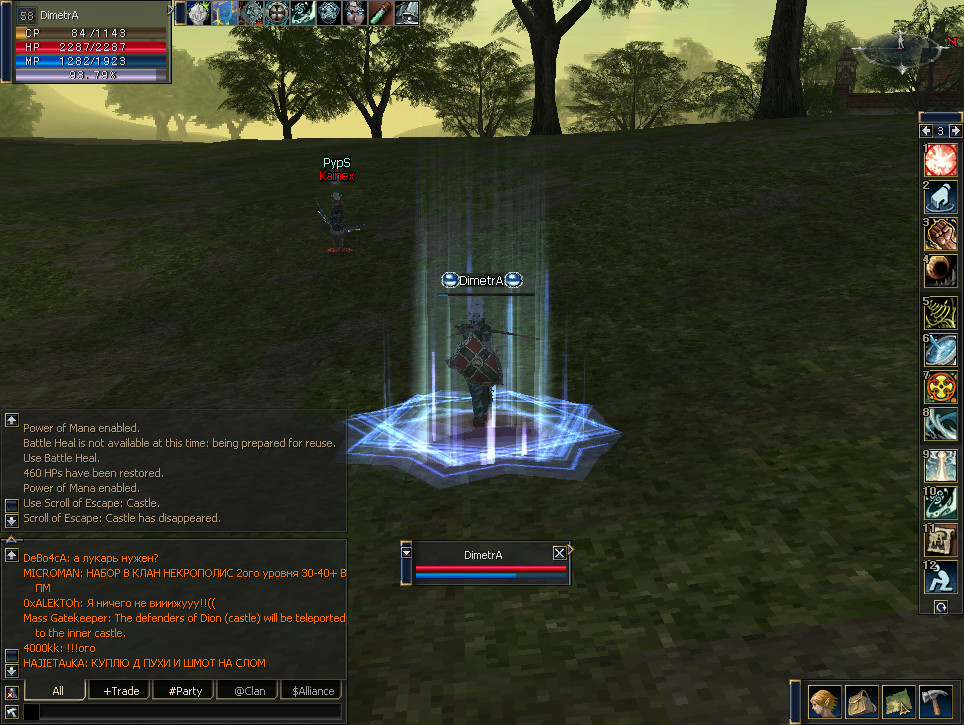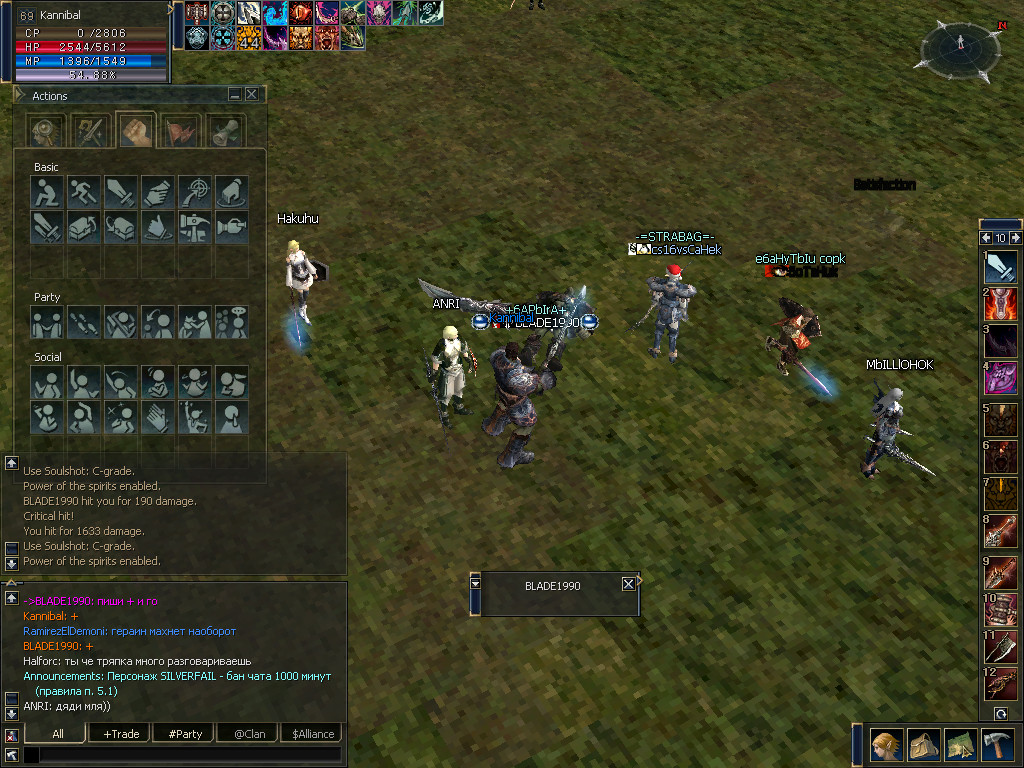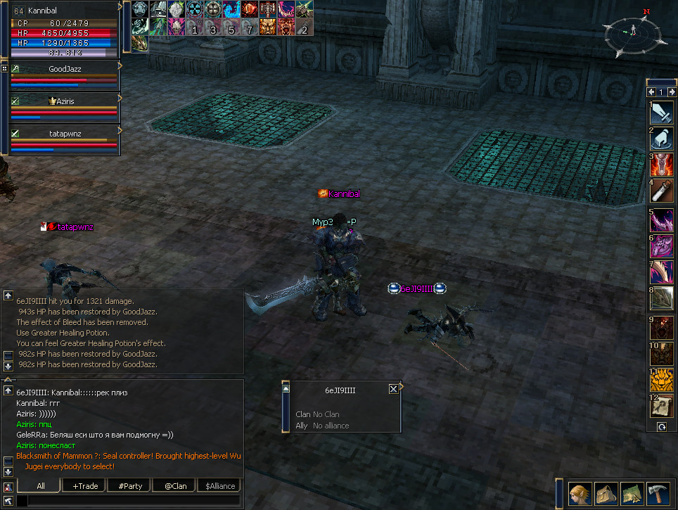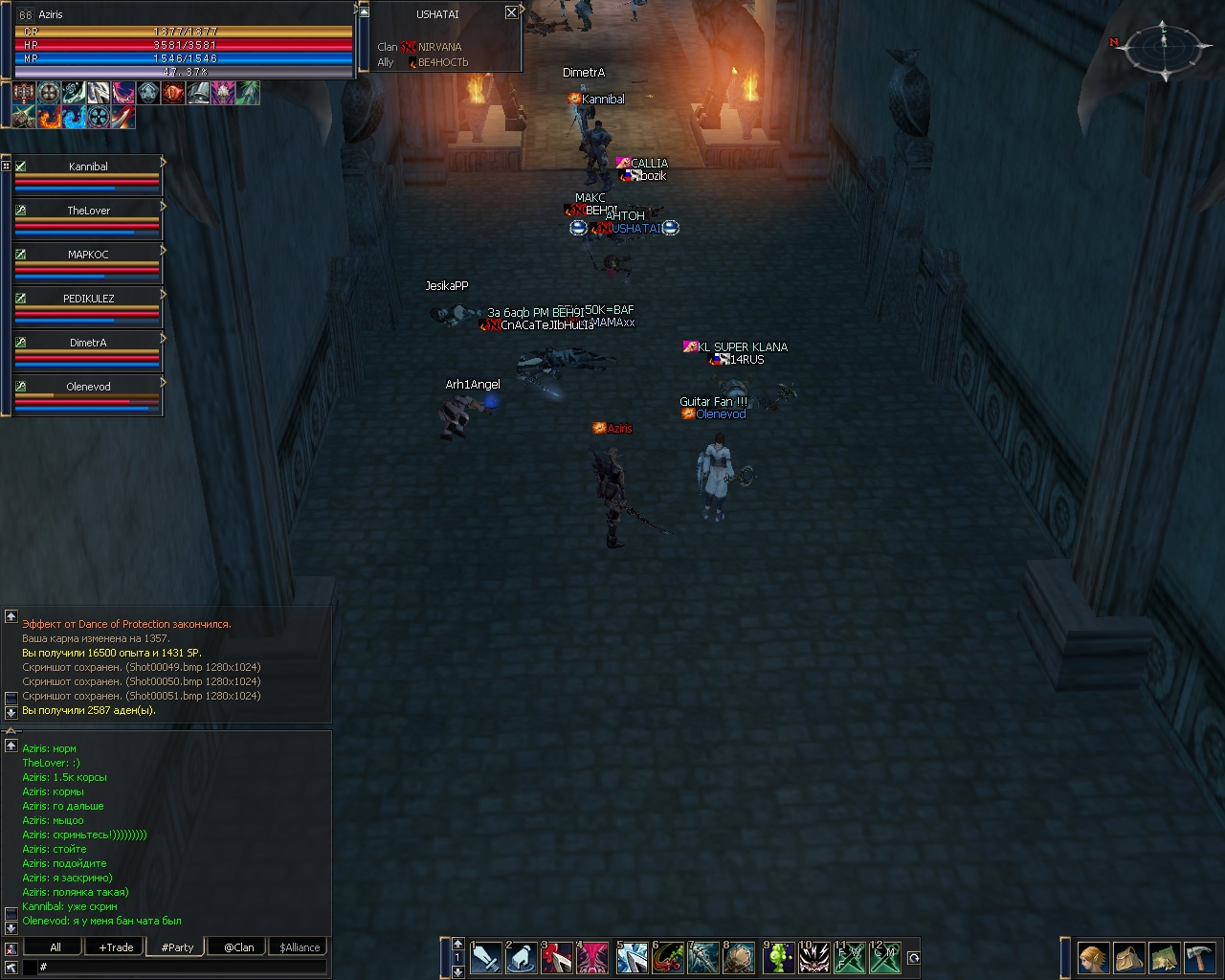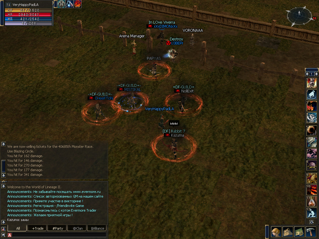 | Скрин вовсе не с этого сервера и вообще никакого отношения к нашему клану не имеет, если не считать того, что на нем Юра засветился... Но все равно скрин Зчотный ))) (сделал когда-то его Койот, кто его знает) Обратите внимание на панельку скиллов и системные сообщения в чате) Смысл в том, что это был первый СоМ на сервере. Дело было настолько неслыханное, что на Галю (Глафиру) сразу навалились с обвинениями, что его ей нарисовали. Скрин назывался "Чито-сомик" )) Койот добавил атмосферу чытерства. Я тогда этой веселухи не застал, к сожалению, вышел буквально за несколько минут до прихода Гали.
